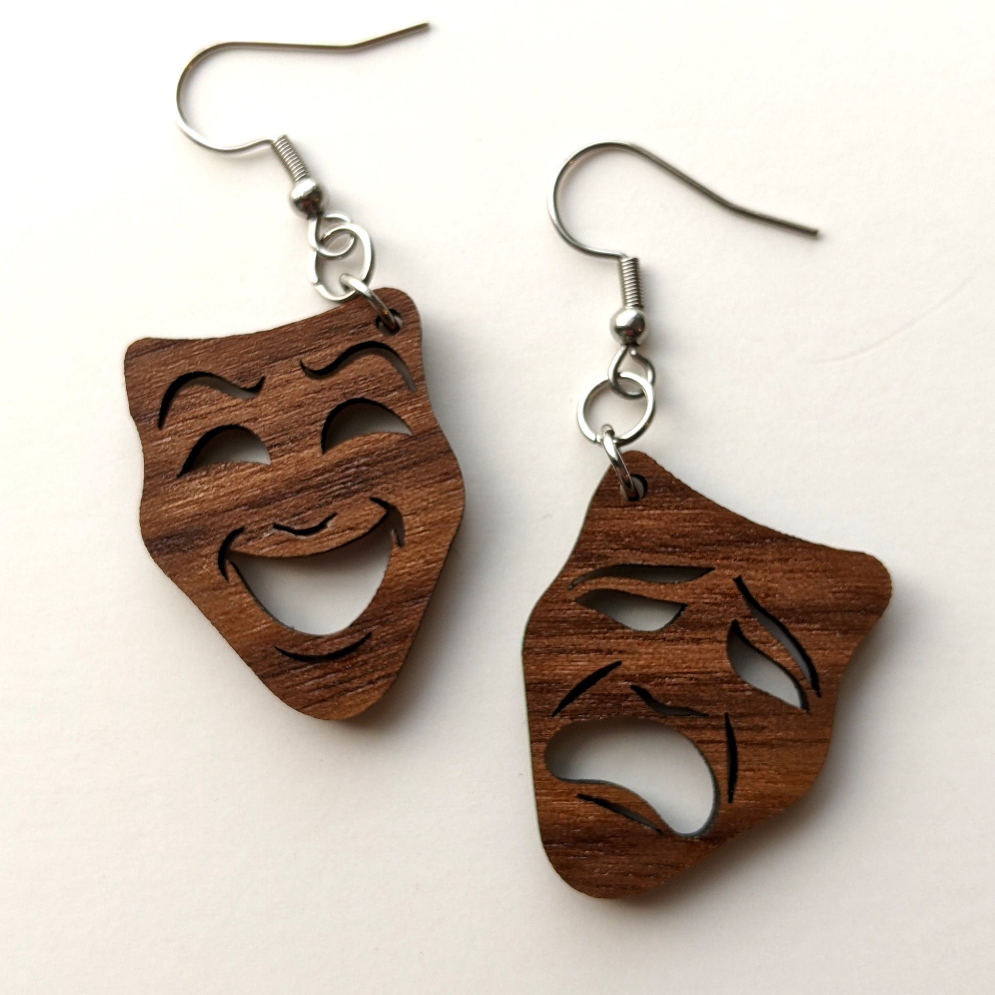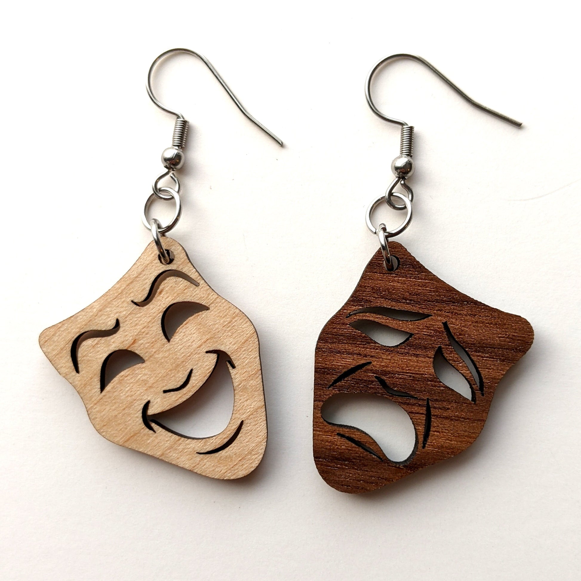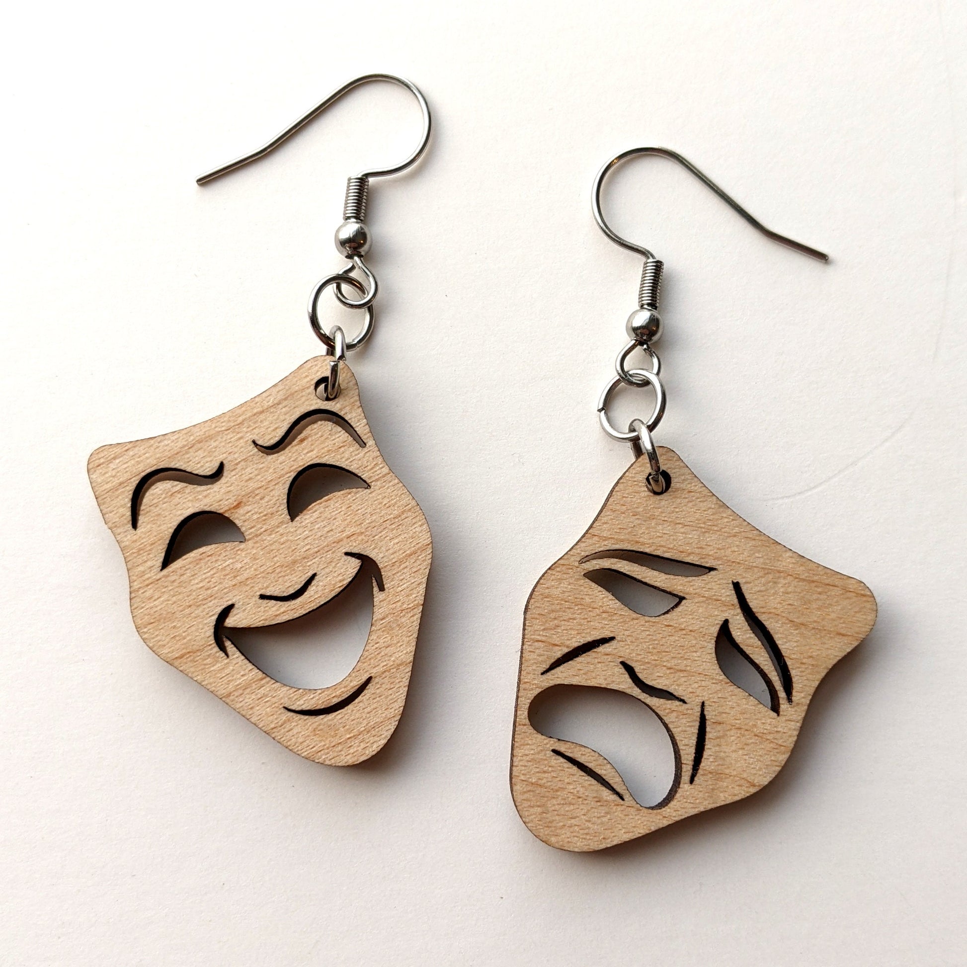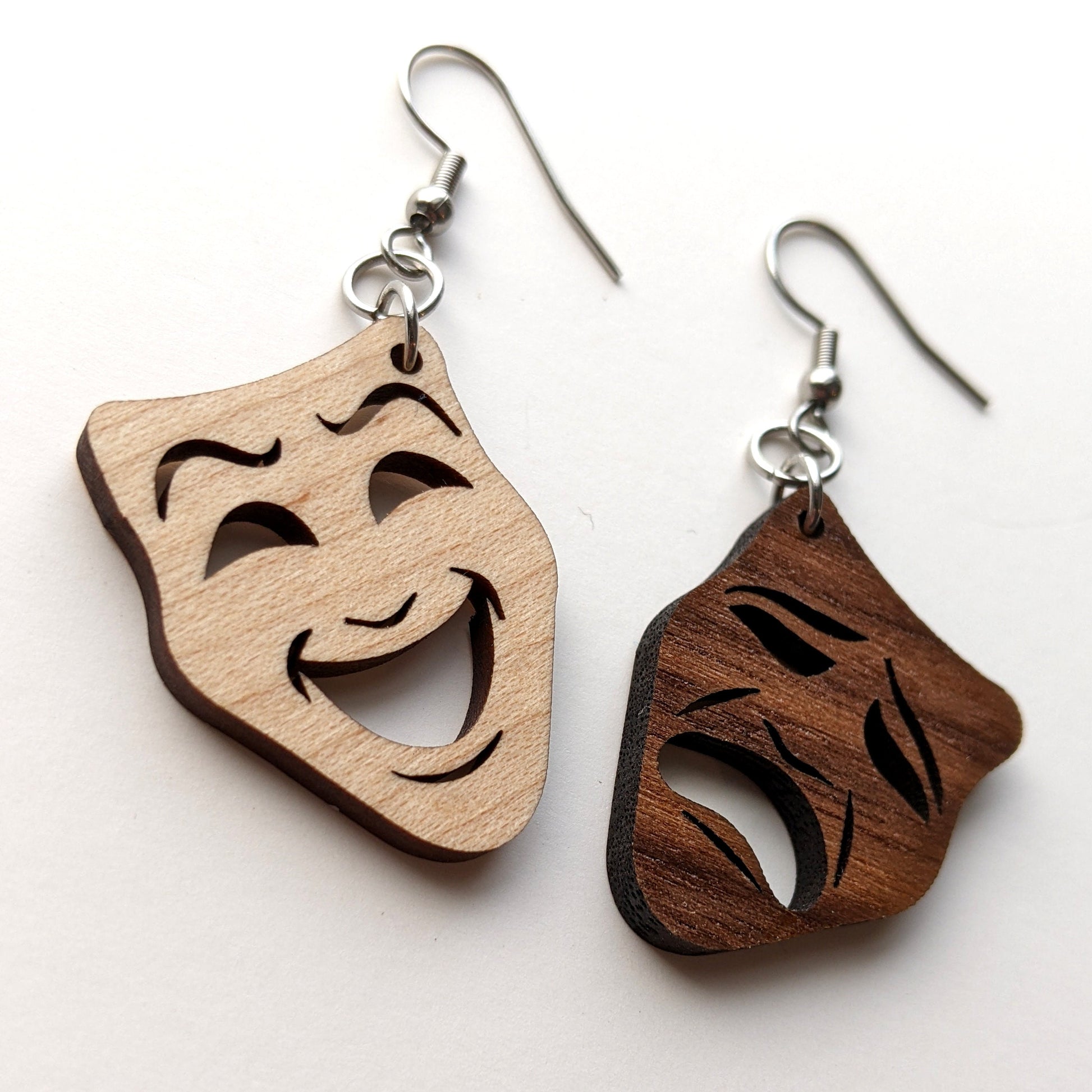 Theatre Masks Tragedy Comedy Dangle Earrings